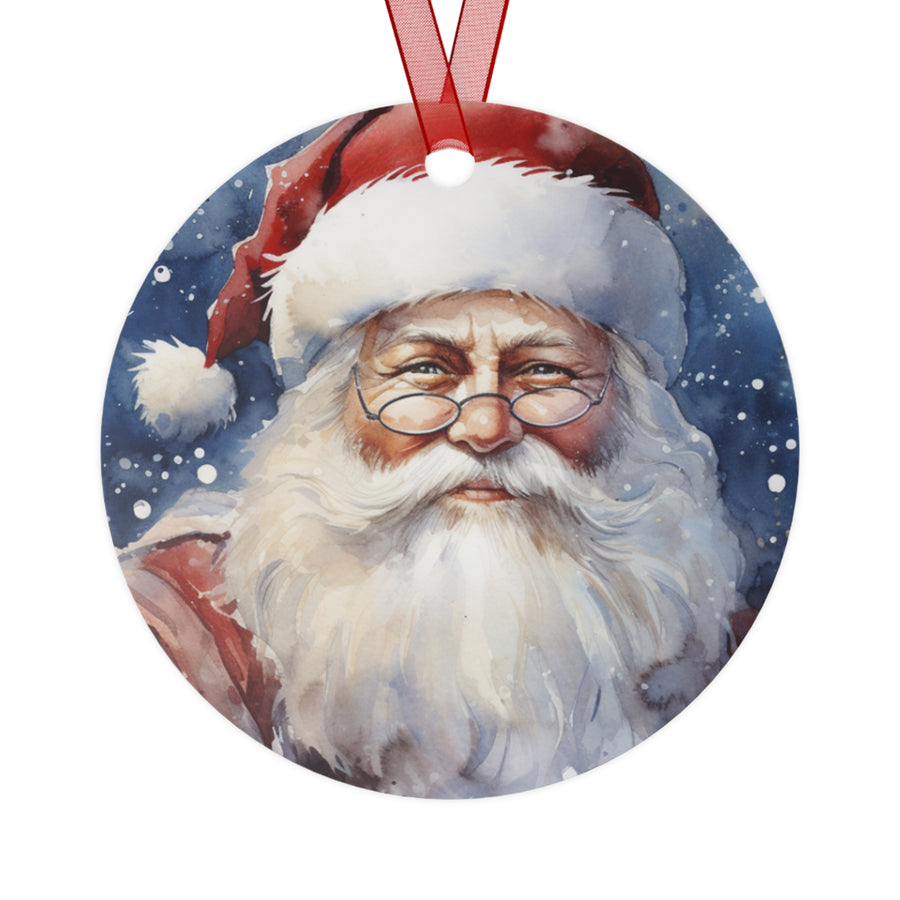 Experience the magic of the season with our metal Christmas ornament featuring the face of Santa.
