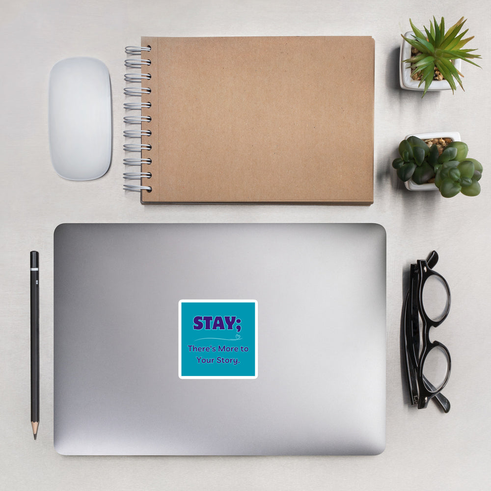 Brighten your day and inspire others with this vinyl sticker that says 'STAY; There's more to your story'. You never know who needs to see this message today. It's perfect to display on your laptop, water bottle, mirrors, notebooks.