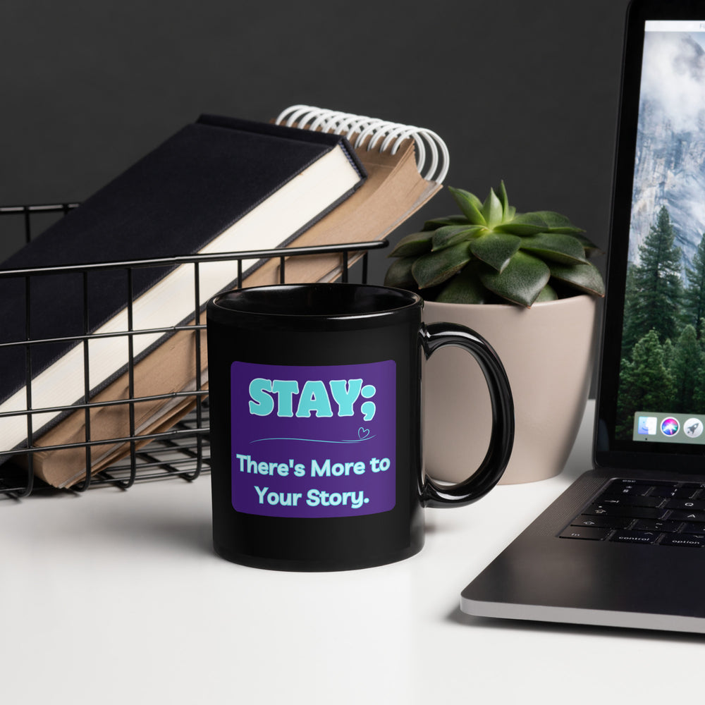 This white glossy mug features a simple yet profound design: Stay; There's More to Your Story.