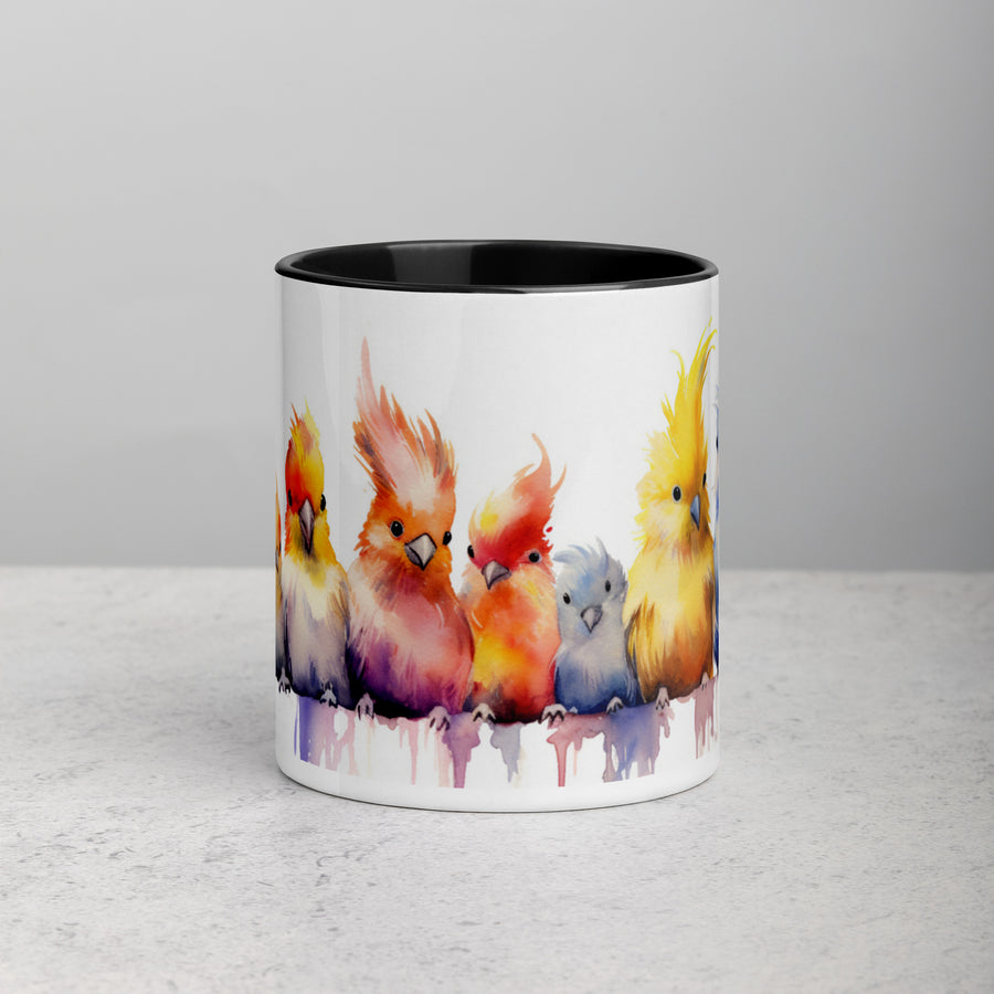 Hey there, cockatiel fans! This ceramic mug featuring a row of colorful cockatiels is simply adorable. If you can't resist those cute and smart birds, then this mug is a must-have for your collection!